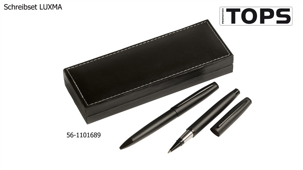 incl. twist action ballpoint pen (blue ink) with cap and rollerball pen (black ink), with chrome base for brilliant engraving, supplied in matching case