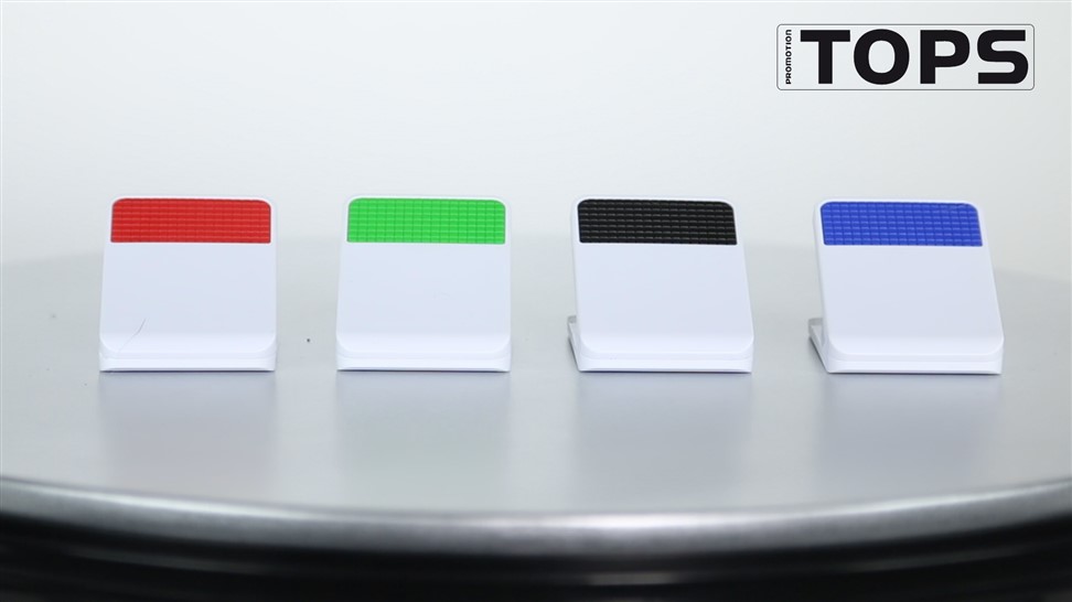 for memos: clip with integrated pen holder, magnet on the back side, front side with exposed advertising area