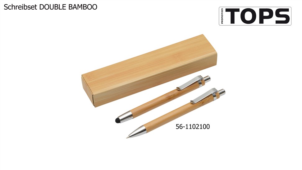 consists of ballpoint pen with press mechanism and touchscreen tip (blue ink) as well as mechanical pencil, both writing instruments with elegant bamboo shaft, supplied in paper box with bamboo design