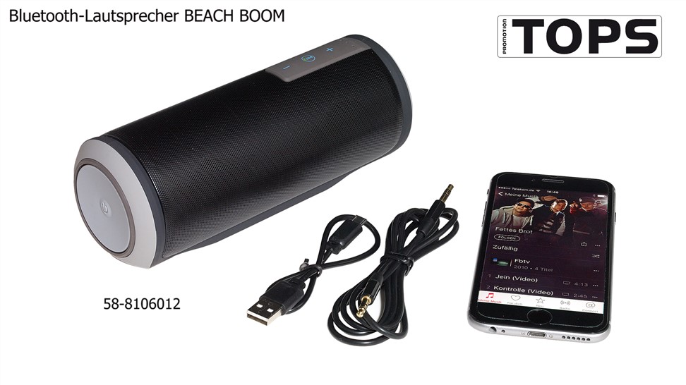 with Bluetooth, also connectable to external devices via line-in connection 3,5 mm audio jack, slot for micro SD card, with hands-free talking, max. range: approx. 10 m, USB charging cable with micro USB plug, shiny metallic aluminium casing with rubber...