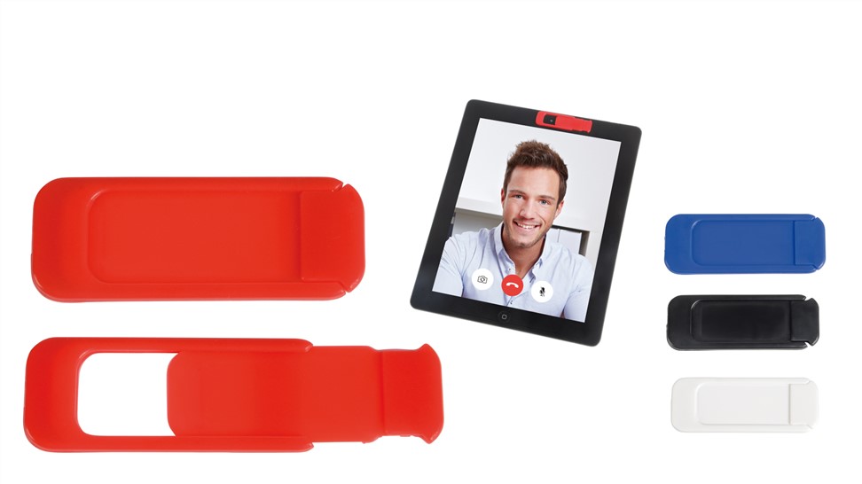 with 2 adhesive strips on the back for fastening to the laptop, easy opening and closing through side control
